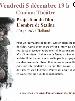 L’Université Populaire de Château-Thierry propose la projection du film L’Ombre de Staline d’Agnieszka Holland le vendredi 5 décembre à 19 h, au Cinéma Théâtre.