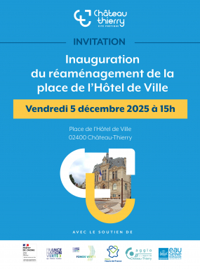 La Ville de Château-Thierry vous invite à l’inauguration du réaménagement de la place de l’Hôtel de Ville, le vendredi 5 décembre 2025 à 15h.