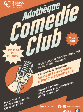 La Ville de Château-Thierry propose aux jeunes de 11 à 17 ans un stage gratuit d’improvisation stand-up avec Yoann Vellaud, du 29 octobre au 1er novembre 2025