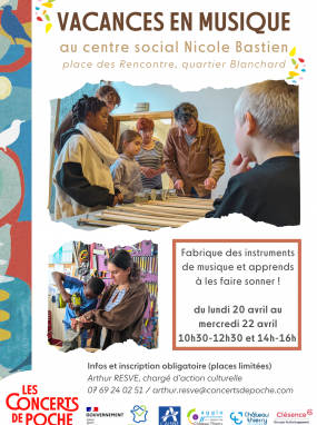 Le centre social Nicole Bastien accueille l’événement Vacances en musique, organisé par les Concerts de Poche, au Palais des Rencontres, quartier Blanchard.