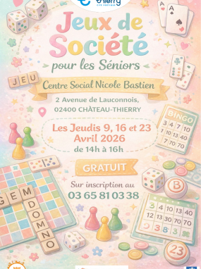 Les jeudis 9,16 et 23 avril 2026, de 14h à 16h, le centre social Nicole-Bastien vous propose trois après-midis conviviales dédiées aux jeux de société pour les séniors. L’occasion de partager un moment agréable, d’échanger et de découvrir de nouveaux jeux.
