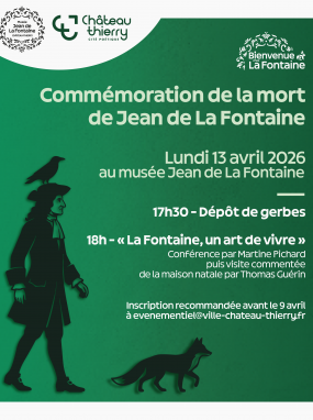À l’occasion de la commémoration de la mort de Jean de La Fontaine, la ville de Château-Thierry organise une journée spéciale le lundi 13 avril 2026.