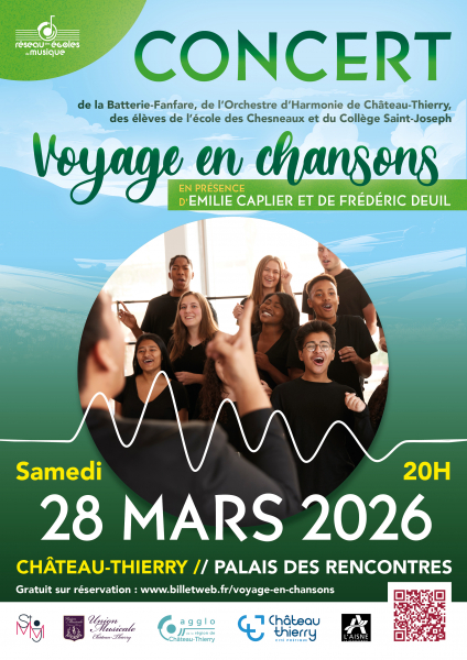 Le samedi 28 mars 2026 à 20h, le Palais des Rencontres accueille un concert exceptionnel réunissant la Batterie-Fanfare, l’Orchestre d’Harmonie de Château-Thierry, ainsi que les élèves de l’école des Chesneaux et du Collège Saint-Joseph.