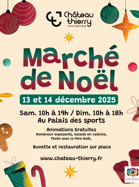 La Ville de Château-Thierry vous donne rendez-vous pour son traditionnel marché de Noël les samedi 13 et dimanche 14 décembre 2025 au Palais des Sports. Plus de quatre-vingts exposants seront présents pour proposer artisanat, gourmandises et idées cadeaux, dans une ambiance chaleureuse et festive.