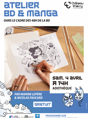 Découvrez les secrets de la création de BD et manga lors d’un atelier gratuit animé par Marine Lepère et Nicolas Faucard ! Un moment créatif pour explorer les techniques de dessin et d’écriture, dans le cadre des 48h de la BD. Cet événement s'inscrit dans le programme Japan Vibes, des animations pour les jeunes autour de la culture pop et japonaise.