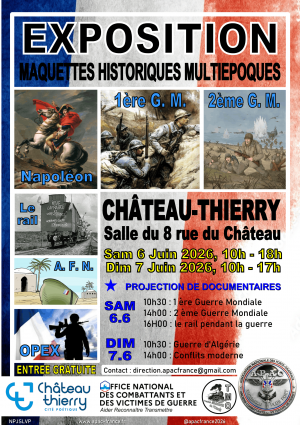 L’Office national des combattants et des victimes de guerre organise une exposition de maquettes historiques retraçant différentes périodes majeures de l’Histoire, de l’époque napoléonienne aux conflits contemporains, en passant par la Première et la Seconde Guerre mondiale, la guerre ferroviaire, les A.F.N et les OPEX.