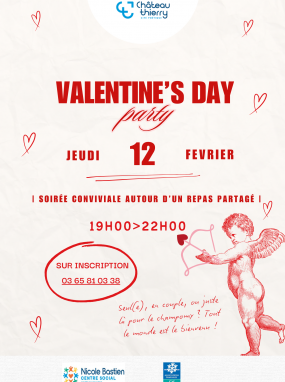 À l’occasion de la Saint-Valentin, le centre social Nicole Bastien vous invite à une Valentine’s Day Party le 12 février, de 19h à 22h.