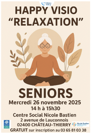 Le mercredi 26 novembre 2025, de 14h à 15h30, le centre social Nicole-Bastien propose une séance en visioconférence dédiée à la relaxation. Cette activité permet de découvrir des techniques simples pour se détendre et favoriser le bien-être au quotidien.