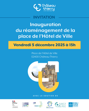 La Ville de Château-Thierry vous invite à l’inauguration du réaménagement de la place de l’Hôtel de Ville, le vendredi 5 décembre 2025 à 15h.