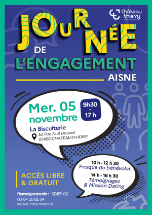 Nous avons le plaisir d’accueillir à La Biscuiterie ce mercredi 5 novembre, la Journée de l’Engagement , organisée par le Service Départemental à la Jeunesse, à l’Engagement et aux Sports (SDJES) de l’Aisne, en partenariat avec plusieurs acteurs locaux.