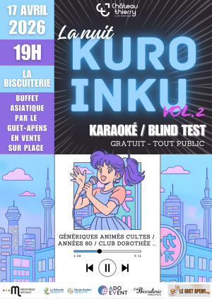 La Biscuiterie accueille La Nuit Kuro Inku le vendredi 17 avril 2026 à partir de 19h. Cette soirée dédiée à la pop-culture proposera un blind-test musical, suivi d’un karaoké ouvert à toutes et tous.