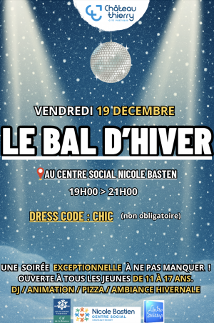 Le centre social Nicole-Bastien organise un bal festif le vendredi 19 décembre 2025, de 19h à 21h, pour tous les jeunes âgés de 11 à 17 ans. Cette soirée proposera une ambiance hivernale avec DJ, animations et restauration sur place. Un dress code chic est proposé, sans obligation.