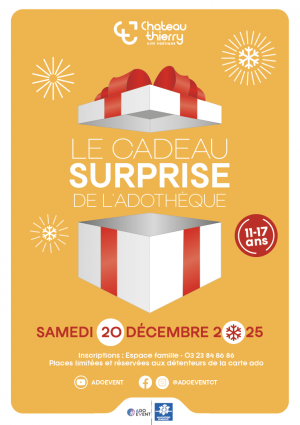 Le samedi 20 décembre, l'Adothèque de Château-Thierry propose une activité exclusive pour les jeunes de 11 à 17 ans : Le Cadeau Surprise.