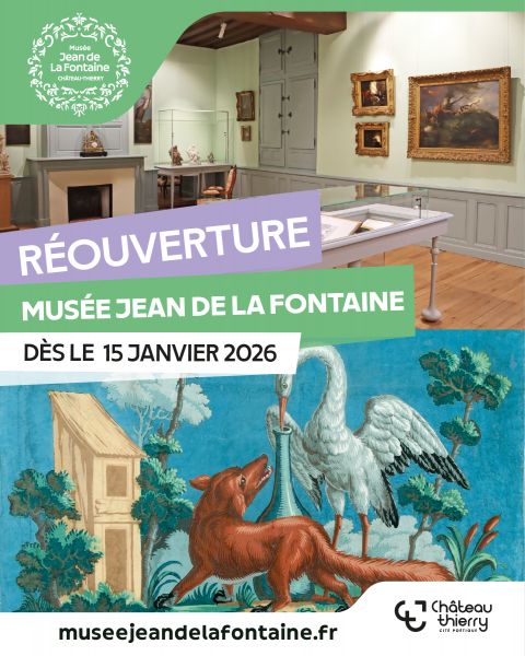 Entièrement rénové et repensé, le musée Jean de La Fontaine propose désormais une expérience de visite renouvelée. Les espaces d’exposition restaurés, la mise en valeur des collections, la refonte complète de la muséographie et la création d’un véritable bâtiment d’accueil, en lien avec la Médiathèque, offrent une immersion unique dans l’univers du poète. Désormais accessible aux personnes à mobilité réduite, le musée s’affirme comme un lieu culturel majeur du département de l’Aisne et un symbole fort de l’identité poétique de Château-Thierry.
