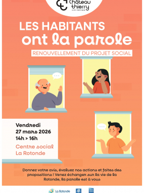 Vendredi 27 mars 2026, de 14h à 16h, le centre social La Rotonde vous invite à participer au renouvellement du projet social.
