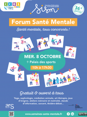 Le mercredi 8 octobre 2025, de 10h à 17h30, le Palais des Rencontres de Château-Thierry accueillera le Forum Santé Mentale.