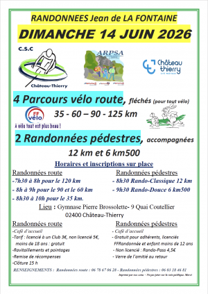 Les départs s’effectueront depuis le gymnase Pierre Brossolette (9 quai Coutellier) : de 7h30 à 8h pour le 125 km, de 8h à 9h pour les parcours 90 km et 60 km, de 8h30 à 10h pour le 35 km, à 8h30 pour la randonnée pédestre de 12 km et à 9h30 pour la randonnée douce de 6,5 km.