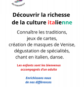 La Ville vous invite à un après-midi placé sous le signe de la découverte et du partage, le samedi 26 avril de 14h à 17h à la Rotonde. Cette rencontre mettra à l'honneur la culture italienne à travers ses traditions, son art, sa cuisine et sa musique.