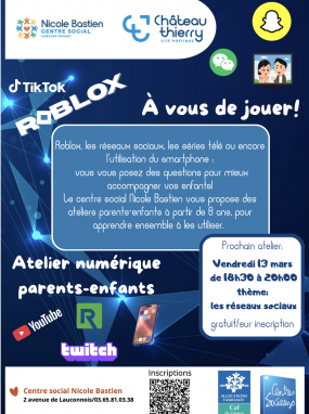 Vous vous posez des questions sur Roblox, les réseaux sociaux, les séries télé ou l’utilisation du smartphone et souhaitez mieux accompagner vos enfants ? Le centre social Nicole Bastien propose des ateliers parents-enfants dès 8 ans pour apprendre ensemble à utiliser ces outils en toute sécurité.