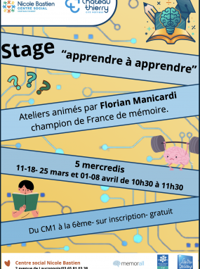 Le centre social Nicole Bastien propose un stage inédit pour aider les enfants à mieux mémoriser et organiser leur apprentissage. Animés par Florian Manicardi, champion de France de mémoire, ces ateliers sont destinés aux élèves du CM1 à la 6ᵉ.