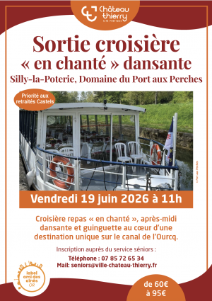 Le Service Seniors de la Ville de Château-Thierry propose une sortie croisière « en chanté » et dansante à destination des retraités castels, le vendredi 19 juin 2026 à 11h.