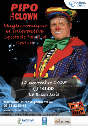 Ne manquez pas une après-midi magique et pleine de rires avec Pipo le clown, le 12 novembre 2025 à 14h à la Biscuiterie. Ce spectacle interactif mêle humour et magie pour émerveiller petits et grands.