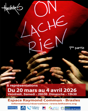 Avec « On lâche rien ! », la troupe propose une Théâtr’Ospective de ses cinquante premières années. À partir de souvenirs et de moments marquants, elle compose une fresque théâtrale collective, entre humour et émotion, retraçant son parcours depuis 1965, de la Maison des Jeunes et de la Culture de Château-Thierry au Festival d’Avignon.