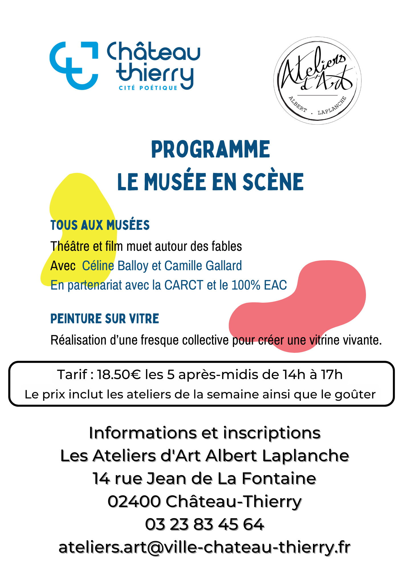 Du 16 au 20 février 2026, les Ateliers d'Art Albert Laplanche proposent un stage artistique pour les jeunes de 8 à 15 ans autour de la thématique « Le musée en scène ».
