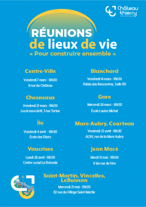 Retrouvez ci-dessous les différentes réunions qui auront lieu prochainement dans votre lieu de vie :